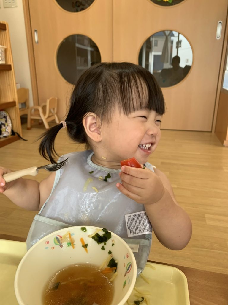 収穫したトマトは、給食やおやつの時間に食べていますよ😊