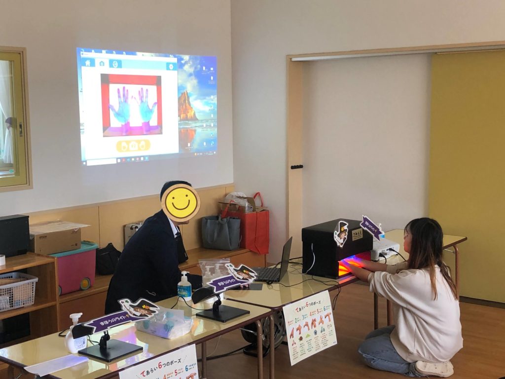 最後に手の汚れを映し出す魔法のライトでどれだけしっかり洗えたかを判定してもらいました。みんな上手に洗えていたので、「てあらいめいじん」の認定証をいただきました。