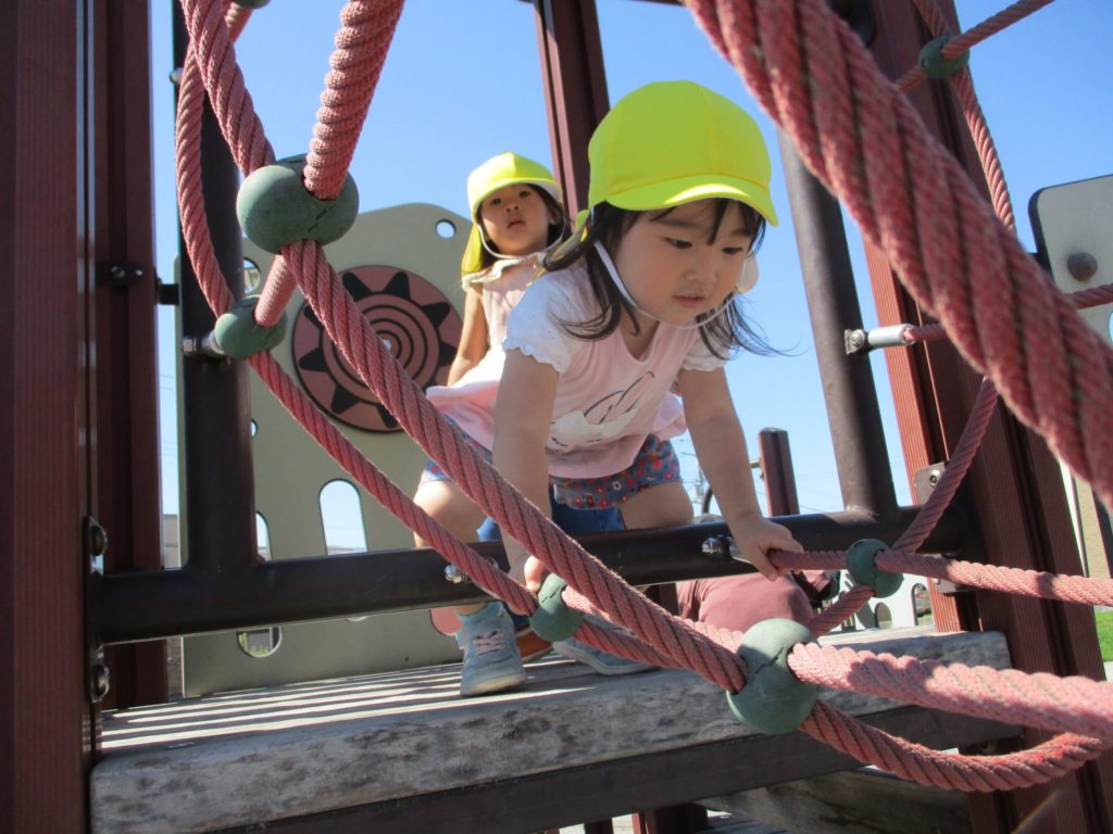 2歳児りす組さんは、秋の園外保育で幼稚園バスに乗って、東光はるかぜ公園に行きました。